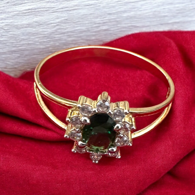Pedra Verde em Zircônia com Pedras Branca formato de Flor em zircônia